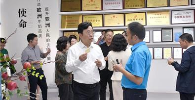 9月4日,國家知識產(chǎn)權(quán)局黨組成員、副局長李眈陸率國家知識產(chǎn)權(quán)局戰(zhàn)略規(guī)劃司副司長劉菊芳等領(lǐng)導(dǎo)一行5人到大理州企業(yè)家協(xié)會(huì)理事單位——云南歐亞乳業(yè)調(diào)研指導(dǎo)工作,云南省市場監(jiān)管局副局長夏生安、大理州副州長王武、大理州市場監(jiān)管局局長茶向金等領(lǐng)導(dǎo)陪同調(diào)研。調(diào)研組聽取了公司副總經(jīng)理?xiàng)钣览蜿P(guān)于公司發(fā)展歷程、奶源建設(shè)、生產(chǎn)加工、市場開發(fā)、品牌打造等工作情況匯報(bào),深入了解公司在新品研發(fā)及工藝提升方面所取得的成效,勉勵(lì)公司要持續(xù)強(qiáng)化技術(shù)創(chuàng)新能力,推進(jìn)新技術(shù)、新方法、新思路與傳統(tǒng)特色產(chǎn)業(yè)深度融合。對于公司獨(dú)特的綠色、有機(jī)娟姍牛奶