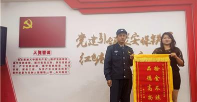有一種美德叫拾金不昧,有一種驚喜叫失而復得,俯身拾起的是美德,昂首送還的是真心。大理州企業(yè)家協(xié)會副會長單位——大理志昂保安服務有限責任公司派駐大理州實驗幼兒園保安員黎光雄用行動傳遞正能量,雖是舉手之勞,卻溫暖人心。5月2日,黎光雄在上班途中撿到女士手提包一個,內有現(xiàn)金1800余元,多張銀行卡及身份證等重要物品,在原地等待多時不見失主后交至大理市公安局太和派出所報案處理。經(jīng)民警聯(lián)系,最終找到了失主,在核實身份后將物品歸還給了失主。5月11日,失主來到公司將一面寫有“品德高尚,拾金不昧”的錦旗送到黎光雄的手中