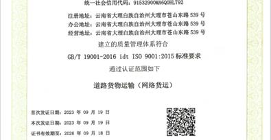 近日,大理州企業(yè)家協(xié)會會員單位——云南興大慧運(yùn)物聯(lián)科技有限公司經(jīng)過國家相關(guān)質(zhì)量認(rèn)證管理部門現(xiàn)場考核,順利通過了ISO9001質(zhì)量管理體系認(rèn)證,預(yù)示著企業(yè)規(guī)范化管理進(jìn)入了發(fā)展的快車道。云南興大慧運(yùn)物聯(lián)科技有限公司成立于2020年,專注整車物流數(shù)智服務(wù),依托于互聯(lián)網(wǎng)、大數(shù)據(jù)、物聯(lián)網(wǎng)技術(shù)為上下游企業(yè)客戶提供全程標(biāo)準(zhǔn)化、智能化、可視化的一站式整車物流數(shù)字化貨運(yùn)綜合服務(wù)。未來,興大慧運(yùn)公司將繼續(xù)深耕智慧物流市場,打造西南地區(qū)領(lǐng)先的物流數(shù)智服務(wù)平臺,成為云南乃至西南地區(qū)最大且最值得信賴的運(yùn)力共享平臺,構(gòu)建地區(qū)智慧物流