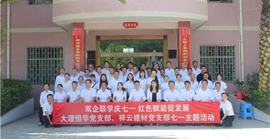 在中國(guó)共產(chǎn)黨成立104 周年之際,7月1日,大理州企業(yè)家協(xié)會(huì)副會(huì)長(zhǎng)單位——大理恒華商貿(mào)有限責(zé)任公司黨支部與大理州企業(yè)家協(xié)會(huì)理事單位——祥云縣建材(集團(tuán))有限責(zé)任公司黨總支部,聯(lián)合開(kāi)展“雙企聯(lián)學(xué)慶七一 紅色賦能促發(fā)展”主題黨日活動(dòng)。通過(guò)參觀王復(fù)生、王德三紅色教育基地、開(kāi)展黨建經(jīng)驗(yàn)交流等,強(qiáng)化黨員理想信念,推動(dòng)黨建與業(yè)務(wù)深度融合,凝聚企業(yè)高質(zhì)量發(fā)展合力。重溫入黨誓詞7月1日上午,在祥云縣劉廠鎮(zhèn)王家莊“紅色傳承”教育館前,面對(duì)鮮紅的黨旗,所有黨員整齊列隊(duì)、舉起右拳,重溫入黨誓詞?!拔抑驹讣尤胫袊?guó)共產(chǎn)黨.....