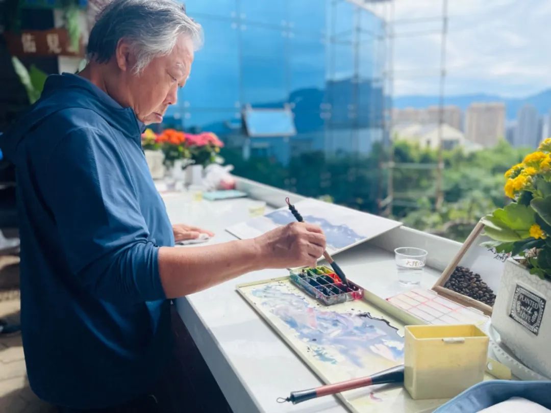 創(chuàng)作期間,美術(shù)名家們有的坐于長廊屋檐之下,有的來到視野開闊的碧海蓮臺景觀,選好角度,支起畫架,擺開顏料,把對蒼洱的熱愛、心中沁滿的鄉(xiāng)愁融入畫筆,用斑斕的色彩描繪出了一幅幅生動鮮活的丹青畫卷。