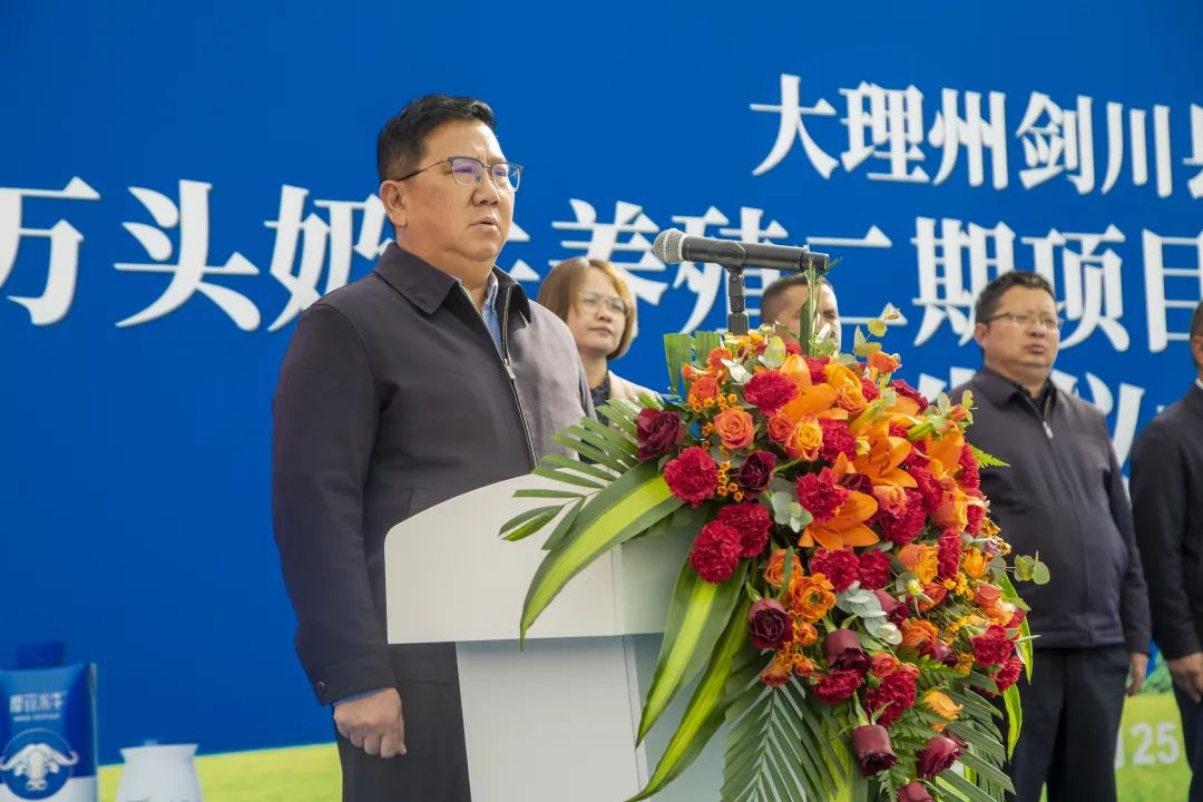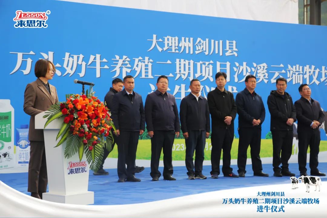 為認(rèn)真貫徹落實(shí)省、州黨委、政府加快推進(jìn)大理乳業(yè)高質(zhì)量發(fā)展的決策部署,以萬頭牧場項(xiàng)目為契機(jī)全力推動(dòng)全州乳產(chǎn)業(yè)高質(zhì)量快速發(fā)展。12月25日,大理州企業(yè)家協(xié)會理事單位——來思爾乳業(yè)沙溪云端牧場進(jìn)牛儀式在劍川縣沙溪鎮(zhèn)舉行。州政府黨組成員、一級巡視員吉向陽,州人大常委會副主任字云飛,州級各相關(guān)單位和劍川縣相關(guān)領(lǐng)導(dǎo)出席了儀式。來思爾乳業(yè)創(chuàng)始人、董事楊子彪出席了儀式,公司副總經(jīng)理古繼芳作表態(tài)發(fā)言。