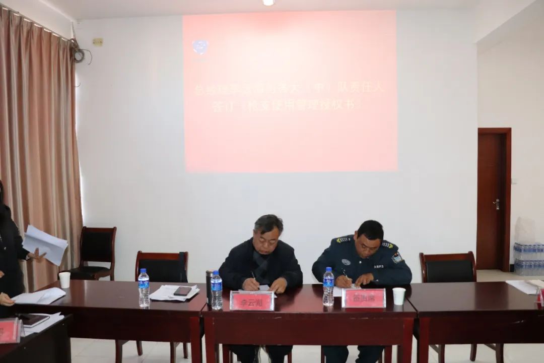 隨后,公司負(fù)責(zé)人與各大(中)隊(duì)責(zé)任人簽訂2024年度《槍支使用管理授權(quán)書》《槍支管理責(zé)任狀》《駕駛員安全責(zé)任狀》。