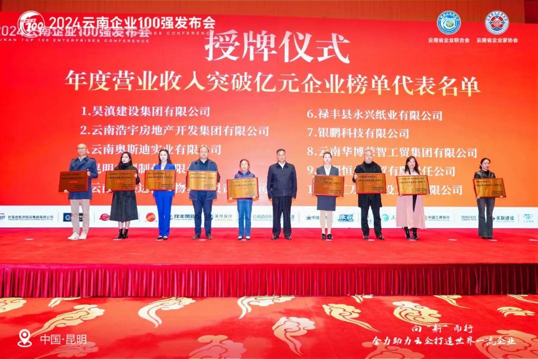 11月22日,由云南省企業(yè)聯(lián)合會與云南省企業(yè)家協(xié)會聯(lián)合主辦,以“向‘新’而行 全力助力云企打造世界一流企業(yè)”為主題的“2024云南企業(yè)100強(qiáng)發(fā)布會”在昆明舉行,會上發(fā)布了2024云南企業(yè)100強(qiáng)榜單、云南制造業(yè)企業(yè)100強(qiáng)、服務(wù)業(yè)企業(yè)50強(qiáng)、高新技術(shù)企業(yè)100強(qiáng)和云南企業(yè)年度營業(yè)收入突破億元企業(yè)名單。