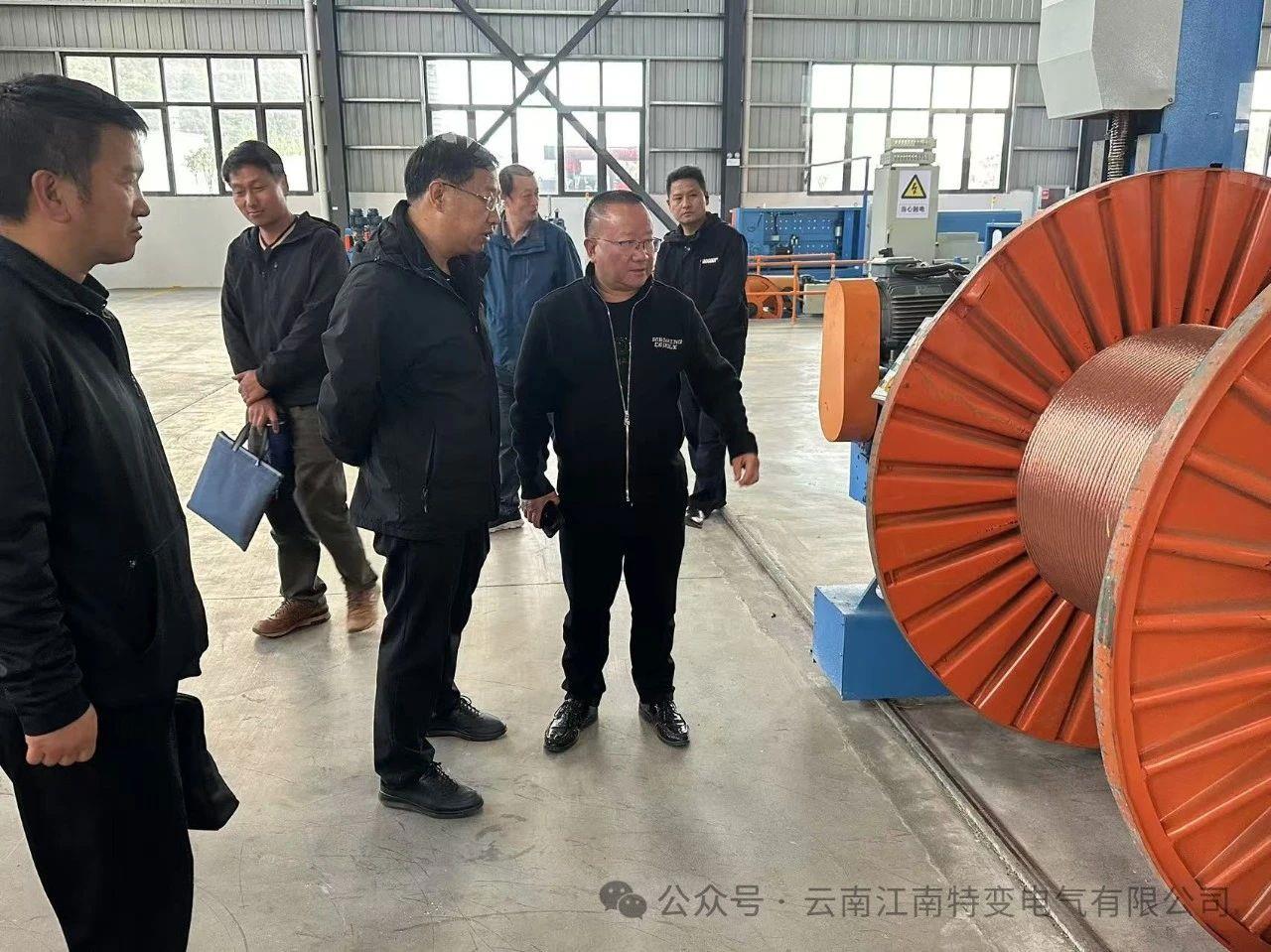 11月26日,大理經(jīng)濟技術開發(fā)區(qū)管委會主任汪國武、副主任張福弟率領經(jīng)開區(qū)工信、稅務、市場監(jiān)管等相關部門領導到大理州企業(yè)家協(xié)會副會長單位——云南江南特變電氣有限公司旗下企業(yè)云南百超電纜有限公司調研。