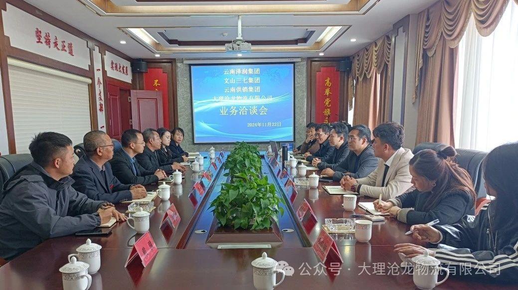 云南澤潤(rùn)集團(tuán)、文山三七集團(tuán)、云南供銷集團(tuán)供應(yīng)鏈公司、云南種源公司考察團(tuán)蒞臨大理滄龍物流參觀考察
