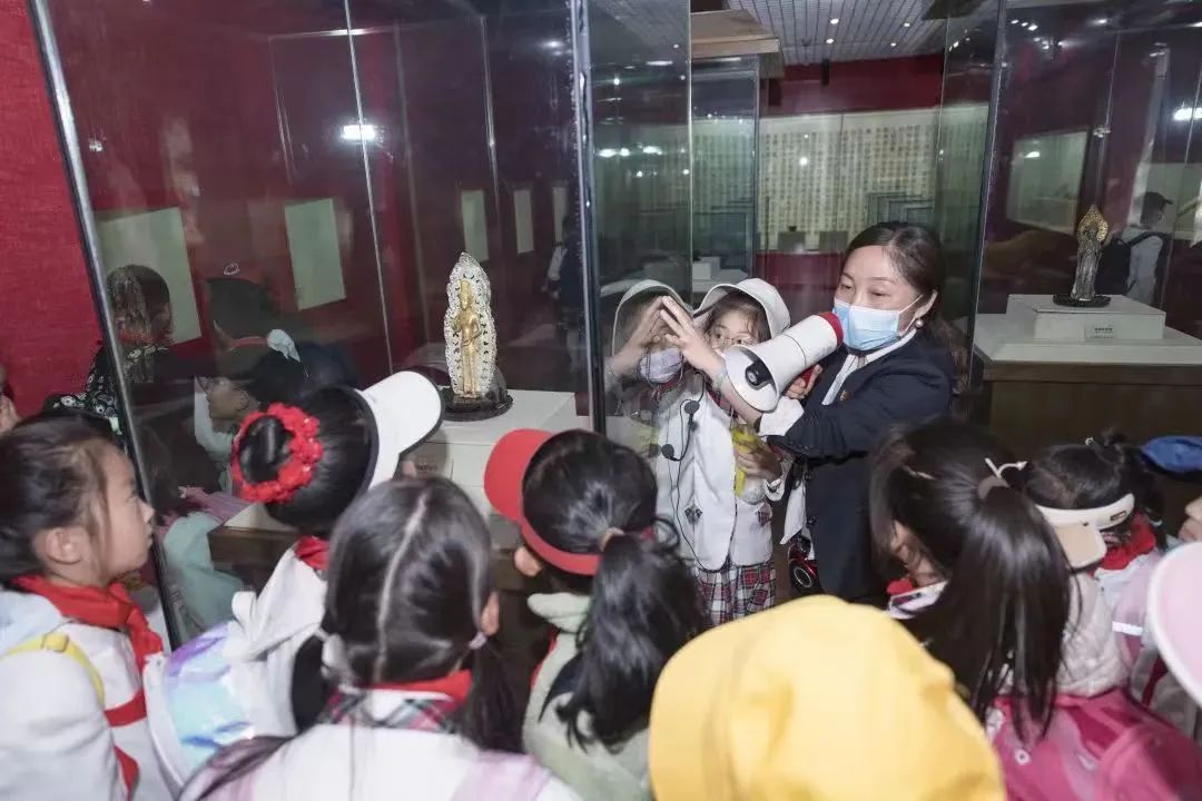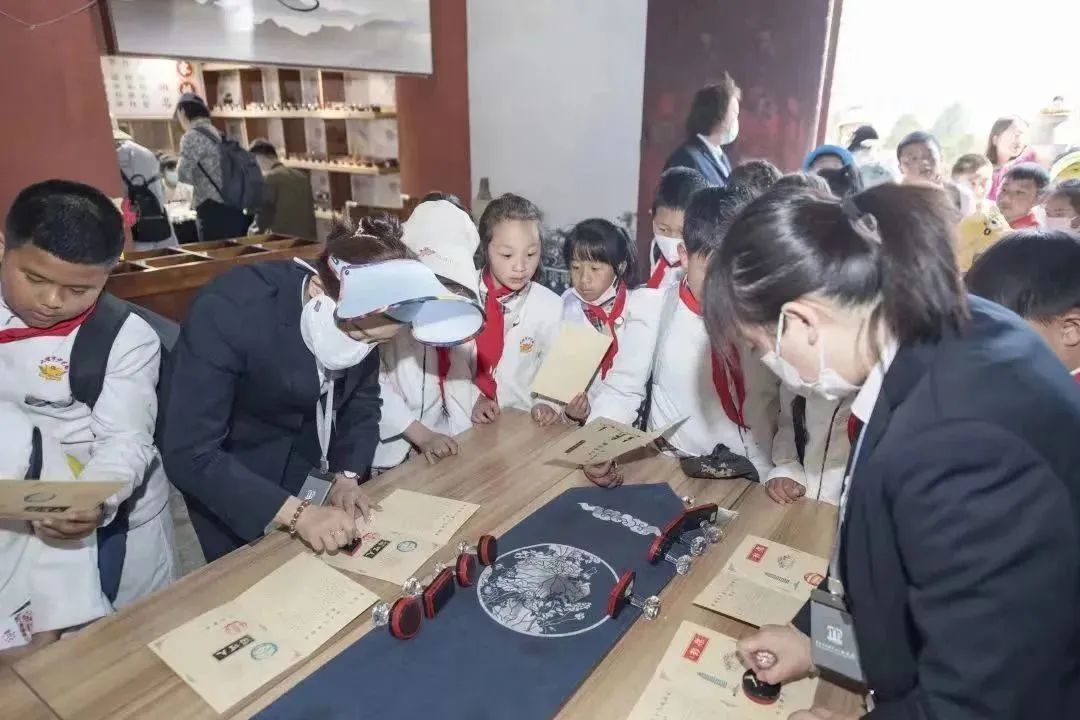 穿過塔區(qū)來到文物陳列館開展“藝術課堂”講學,從線條的婉轉流暢,到鎏金銅像的造型刻畫,無一不在向孩子們彰顯南詔大理國時期的藝術造詣和獨特審美,感受千百年前文物的藝術熏陶。之后的“非遺課堂”,通過參與非遺甲馬體驗和文創(chuàng)印章活動提升孩子們的動手能力,并將集章冊帶回家紀念。