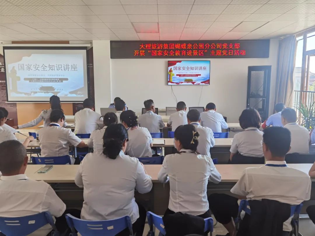 為深入學(xué)習(xí)貫徹黨的二十大精神,加大國家安全宣傳教育工作力度,引導(dǎo)公園干部職工不斷增強(qiáng)國家安全防范意識,大力營造維護(hù)國家安全的濃厚氛圍,2023年5月23日,大理州企業(yè)家協(xié)會副會長單位——大理旅游集團(tuán)下屬的蝴蝶泉公園分公司黨支部組織開展“國家安全教育進(jìn)景區(qū)”主題黨日活動。