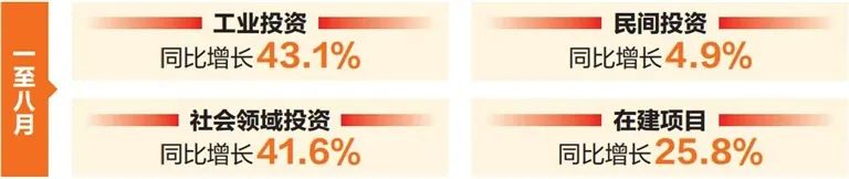 大抓項(xiàng)目投資,力促新項(xiàng)目落地開工,不斷擴(kuò)大有效投資。截至8月末,全省在建項(xiàng)目同比增長(zhǎng)25.8%。其中,計(jì)劃總投資10億元以上項(xiàng)目(不含房地產(chǎn)開發(fā))同比增長(zhǎng)13.9%;1億至10億元項(xiàng)目(不含房地產(chǎn)開發(fā))同比增長(zhǎng)19.8%。