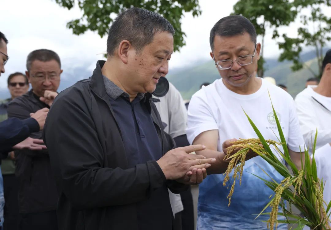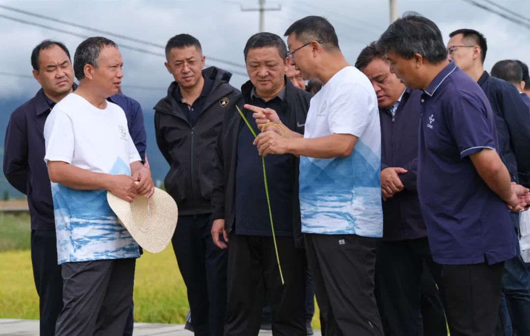 調(diào)研現(xiàn)場,楊國宗認(rèn)真聽取情況匯報(bào),仔細(xì)詢問專家意見建議,并與基地負(fù)責(zé)人細(xì)算水稻增產(chǎn)、增收賬。