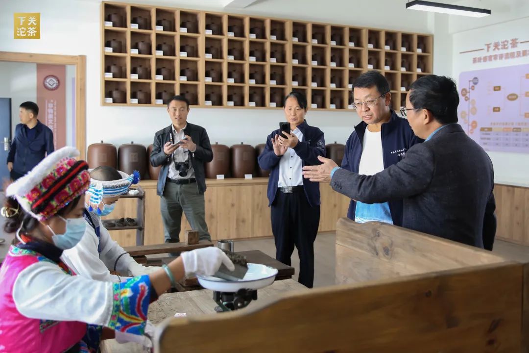 下關(guān)沱茶集團(tuán)公司副總經(jīng)理杜發(fā)源的引領(lǐng)下,中國工程院院士及專家團(tuán)隊(duì)一行參觀了下關(guān)沱茶館及中國(下關(guān))沱茶研究院。參觀過程中,杜發(fā)源副總經(jīng)理為嘉賓介紹了公司生產(chǎn)經(jīng)營及銀橋新廠區(qū)建設(shè)情況,細(xì)致講解了下關(guān)沱茶館《百年華章》《關(guān)茶匠心》《關(guān)茶珍檔》《百年醇香》等展陳內(nèi)容。